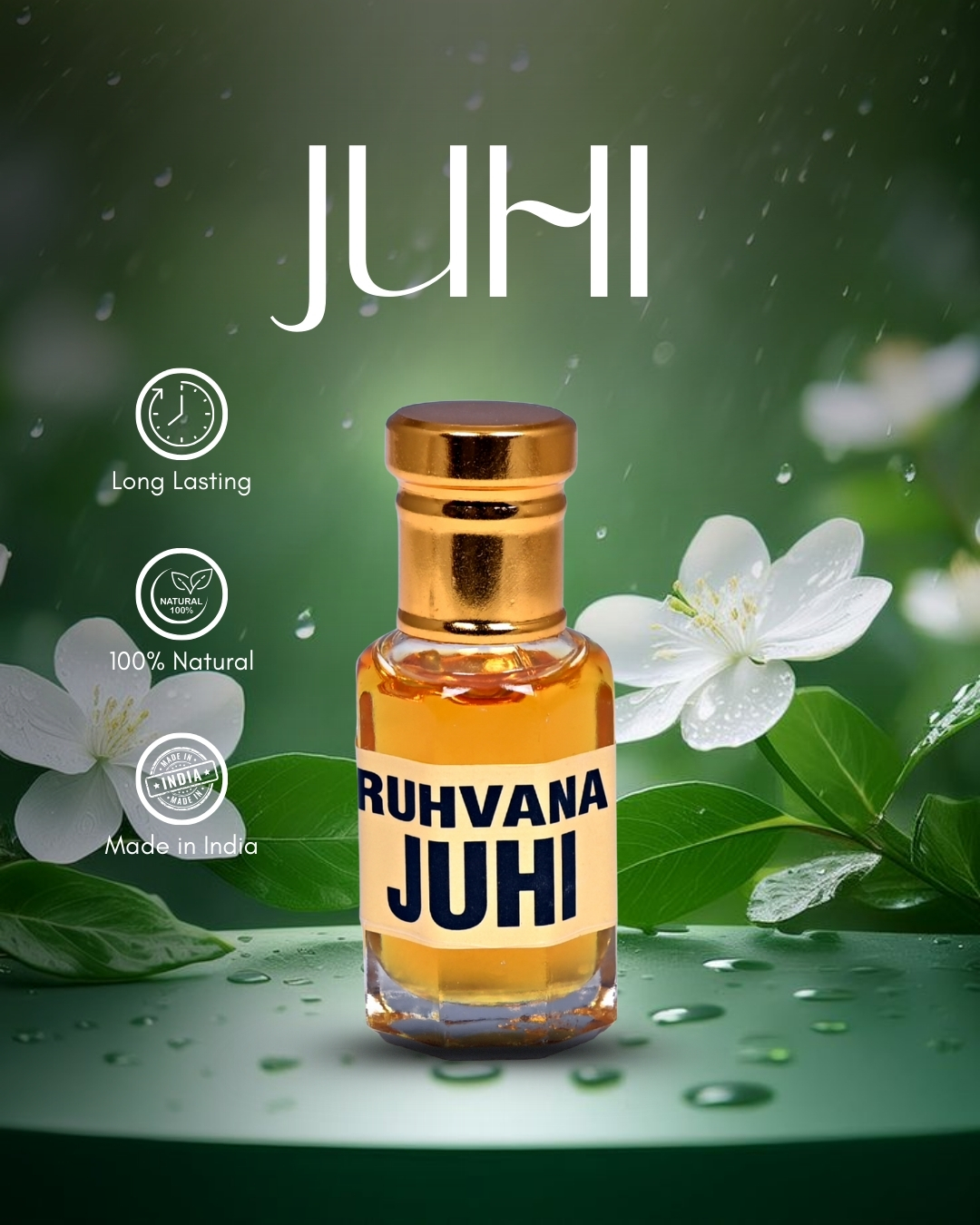 More than just a perfume, Juhi attar has therapeutic benefits. It calms the mind, relieves stress, and promotes a sense of inner peace and joy. The fragrance blends harmoniously with the skin and lingers for hours, leaving a trail that is subtle yet memorable. Suitable for both men and women, Juhi is an elegant everyday fragrance as well as a special choice for traditional occasions.