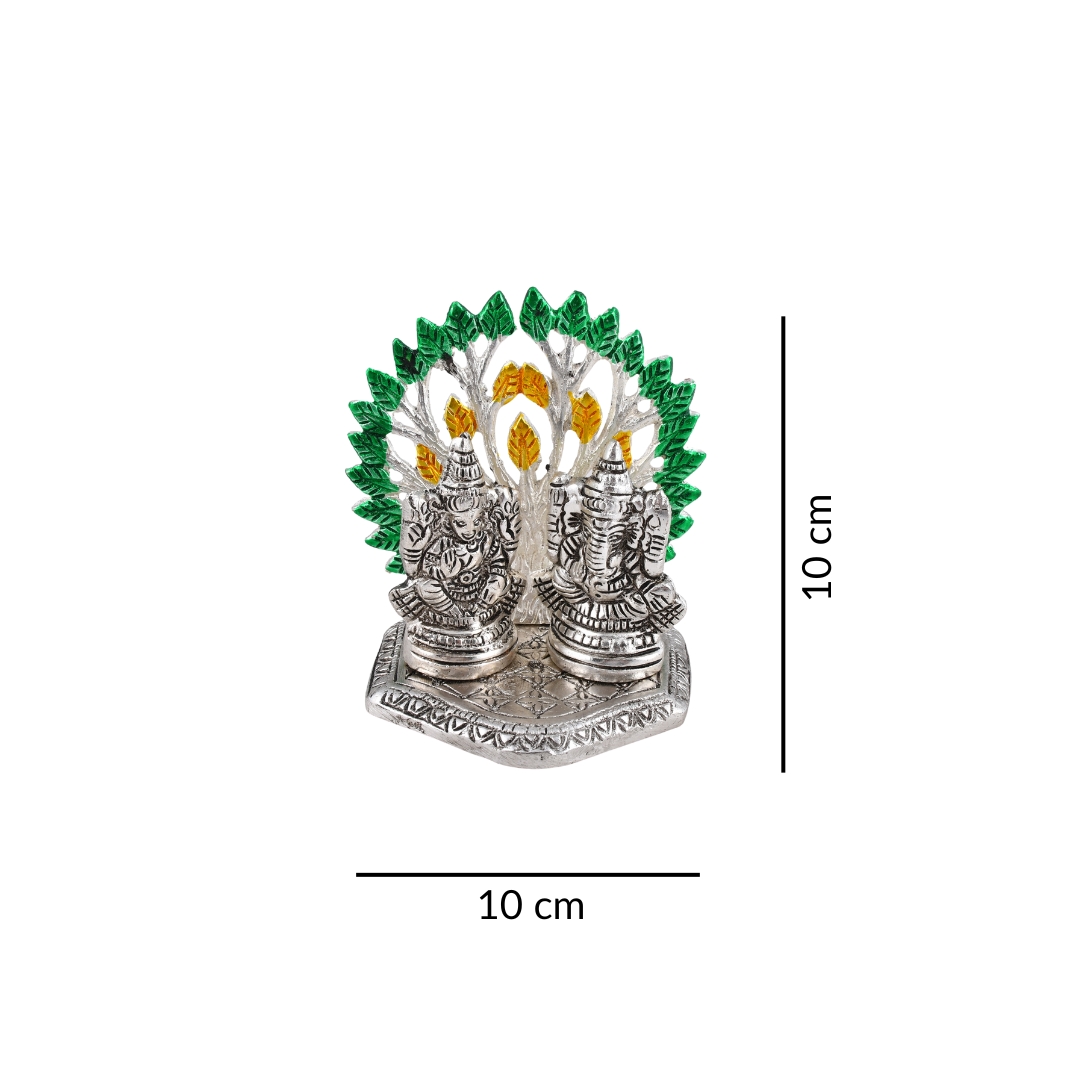 • Kalp Tree Laxmi Ganesh Idol (Silver Finish) || Dimensions – 10 x 10 x 8 cm || Weight – 130 g || Material – Aluminium Metal
