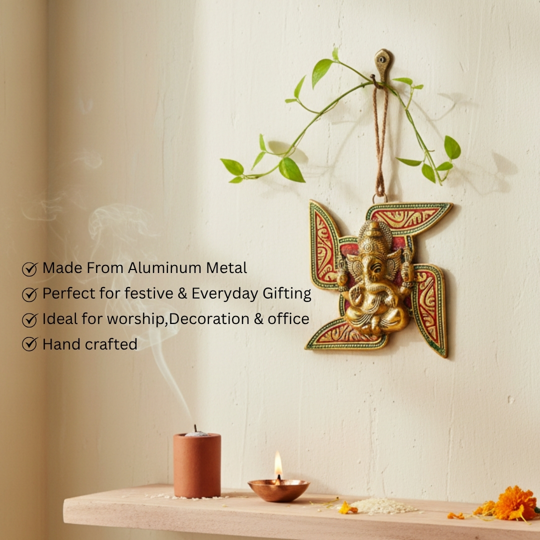 Enhance your space with this Golden Swastik Ganesh Wall Hanging and invite divine grace, prosperity, and protection into your home.