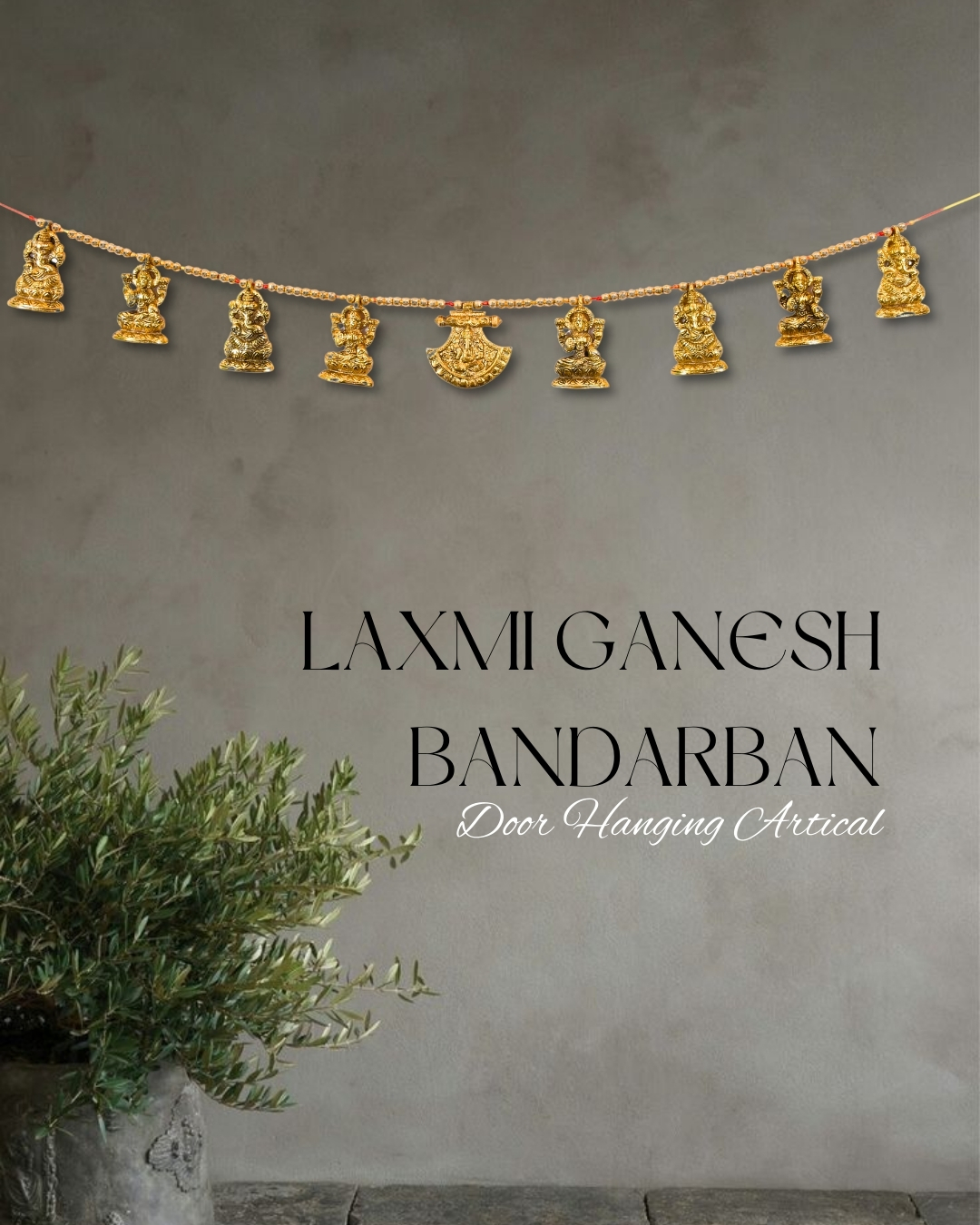• Decorative Laxmi Ganesh Bandarban / Toran || Material – Aluminium & Beads || Golden Finish