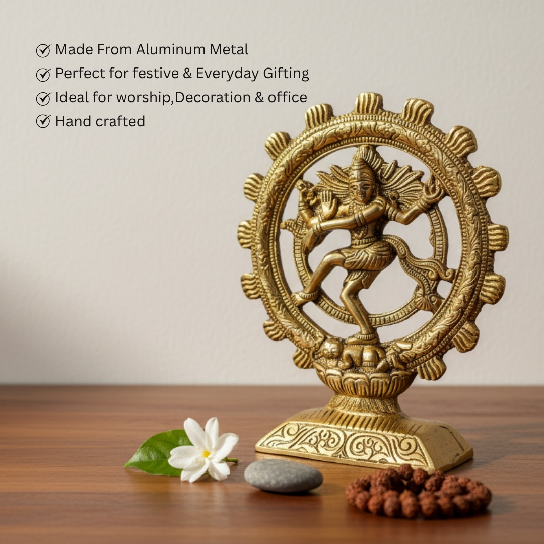 Invite rhythm, prosperity, and spiritual harmony into your home with this auspicious Aluminium Golden Natraj Statue Idol.