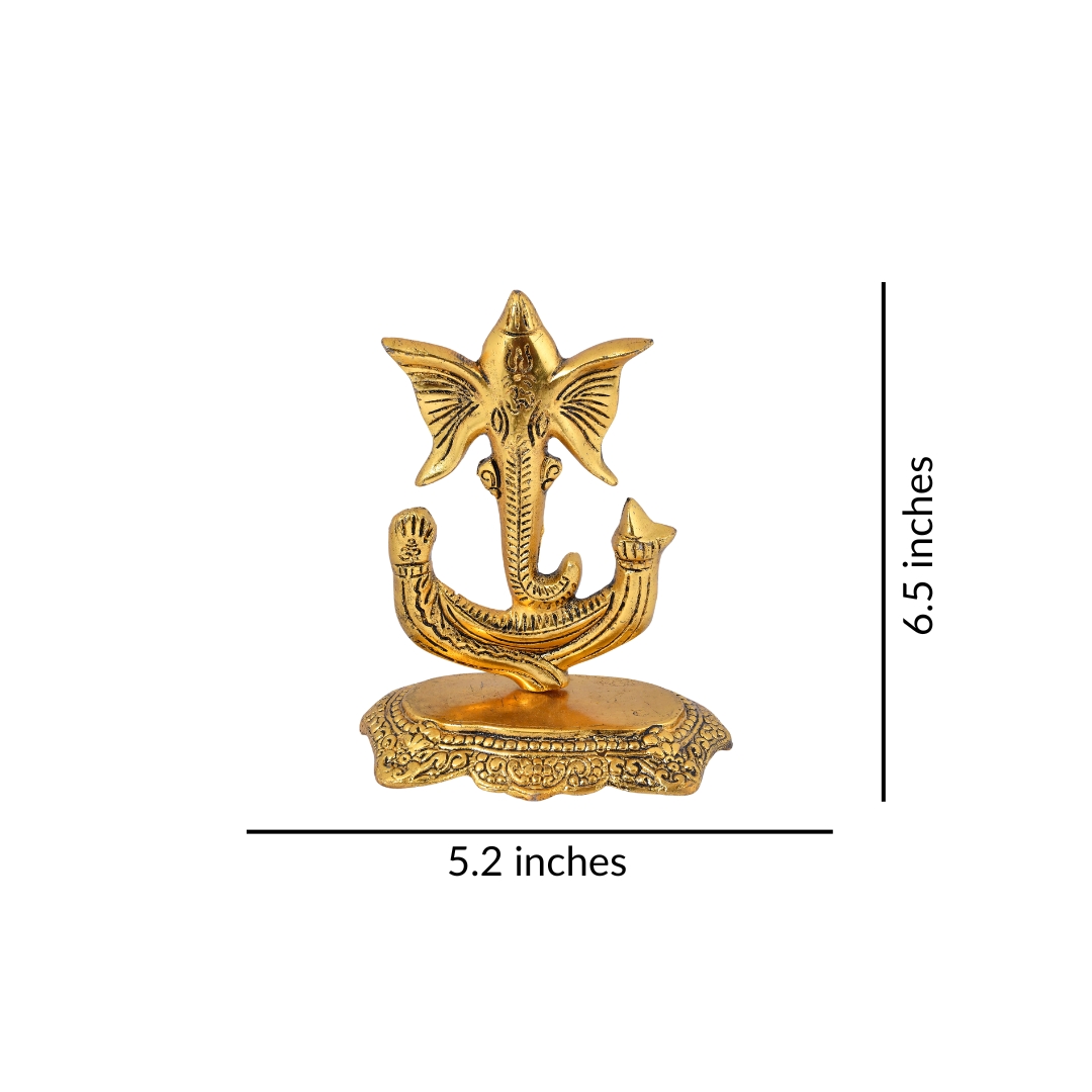 Bring home the sacred presence of Lord Ganesha with this radiant golden aluminium idol and let your space resonate with positivity and divine grace.