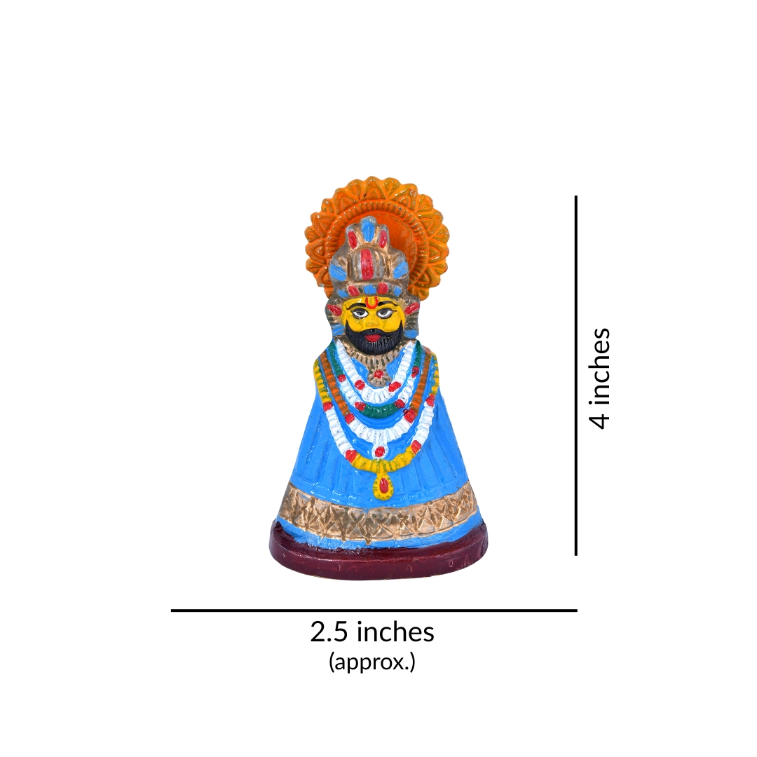 • Khatu Shyam Ji Idol: Beautifully crafted idol of Lord Khatu Shyam Ji || Dimensions – 4 x 2.5 Inches || Material – Aluminium Metal with Coloured Finish.