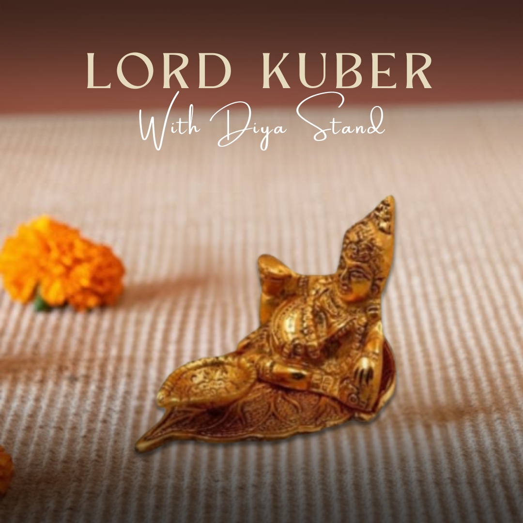 Bring home divine prosperity with this beautifully handcrafted Lord Kuber with Diya Stand, made from high-quality Aluminium Metal in a stunning golden finish. This elegant idol depicts Lord Kuber, the God of Wealth and Abundance, seated gracefully beside a diya stand that symbolizes eternal light and prosperity. Measuring 9 cm in height, 10 cm in length, and 7 cm in width, it fits perfectly in temples, showcases, or work desks. Each detail is delicately designed to reflect fine craftsmanship and sacred artistry. The luminous golden tone adds richness and luxury to your décor while inspiring spiritual peace and positive energy. Perfect as a festive or spiritual gift for your loved ones, this idol brings blessings of financial stability and success. Easy to clean and maintain, simply wipe with a soft dry cloth to preserve its shine for years. A symbol of wealth, light, and devotion, this idol beautifully combines traditional aesthetics with timeless spirituality.