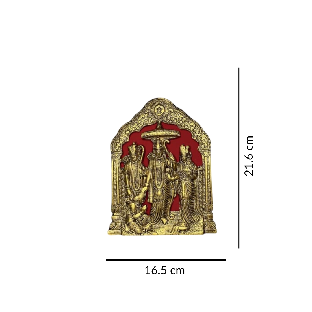 "• Ram Darbar Hanging Idol || Dimensions – 20 x 15 x 4 cm || Weight – 450 g (approx.) || Material – Aluminium Metal || Colour – Golden Meenakari Finish