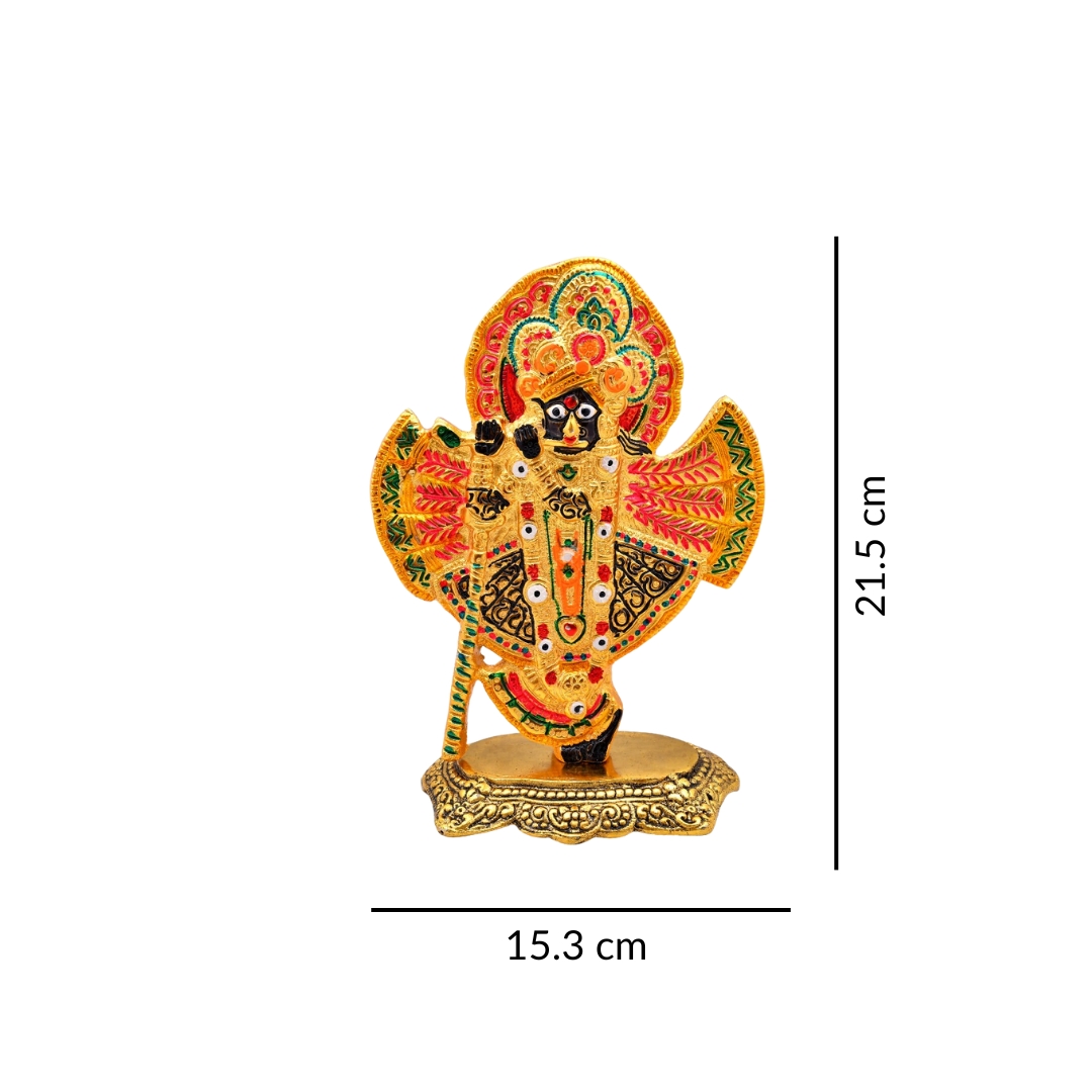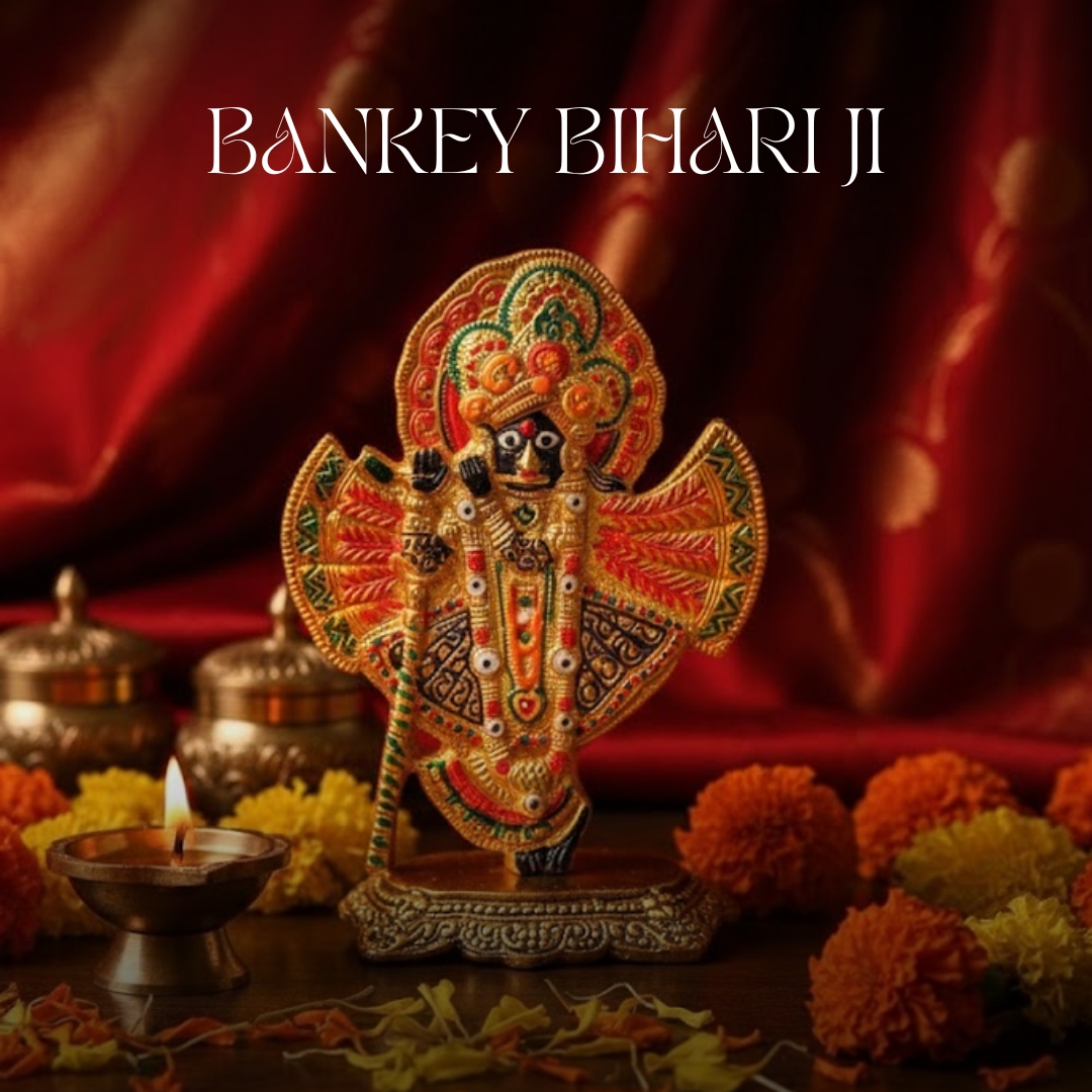 "• Bankey Bihari Ji Idol || Dimensions – 21.5 x 15.3 x 8 cm || Weight – 450 g (approx.) || Material – Aluminium Metal || Colour – Multi-Color Finish