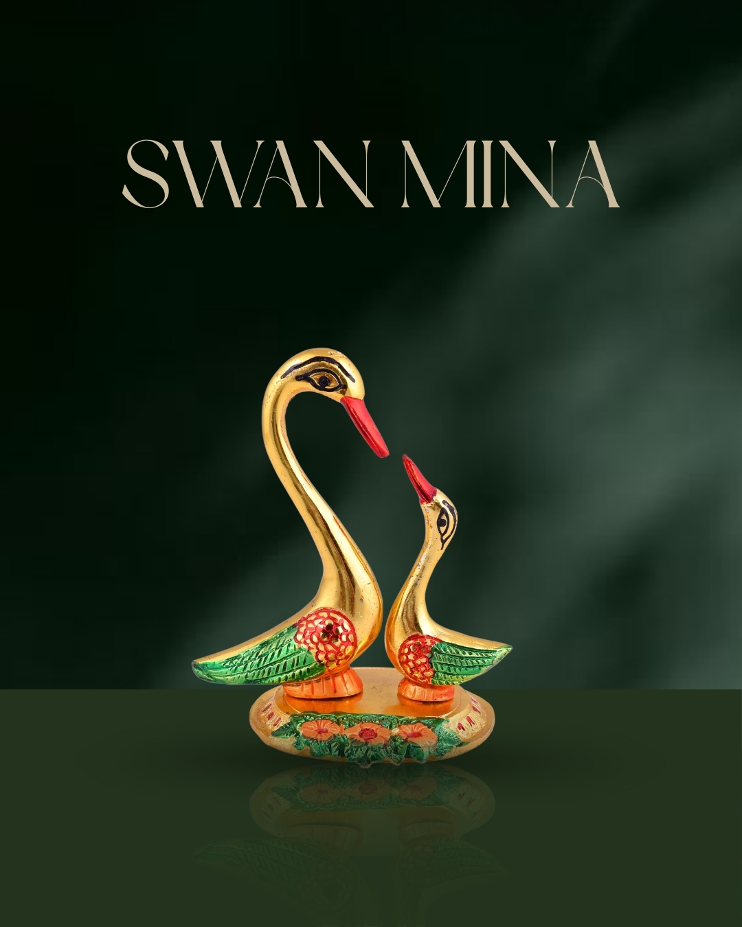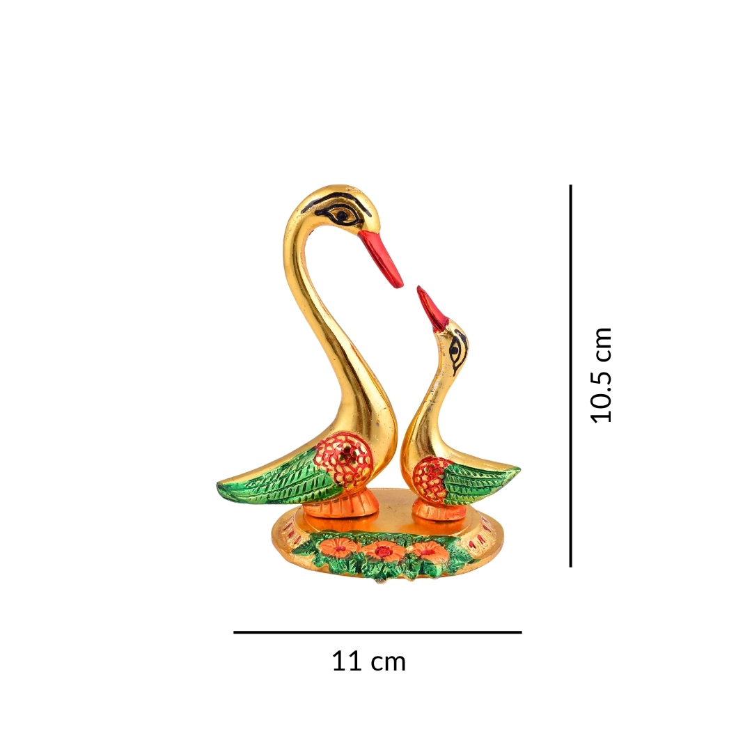 • Swan Mina Pair Showpiece (Golden Finish with Mina Work) || Dimensions – 10.5 x 11 cm || Weight – 180 g || Material – Aluminium Metal
