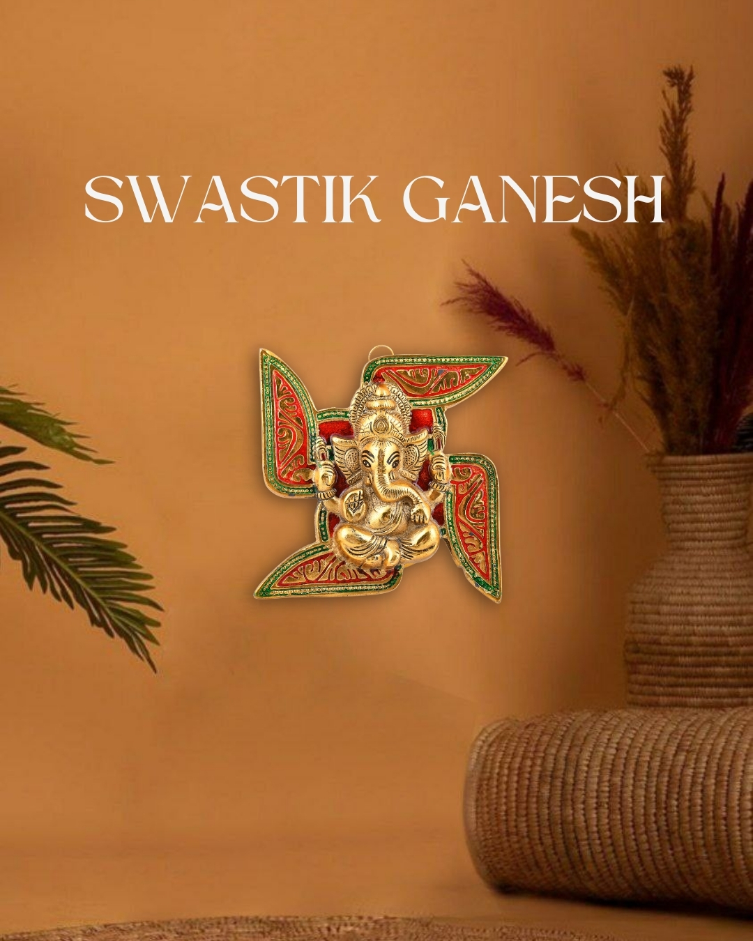 Enhance your space with this Golden Swastik Ganesh Wall Hanging and invite divine grace, prosperity, and protection into your home.