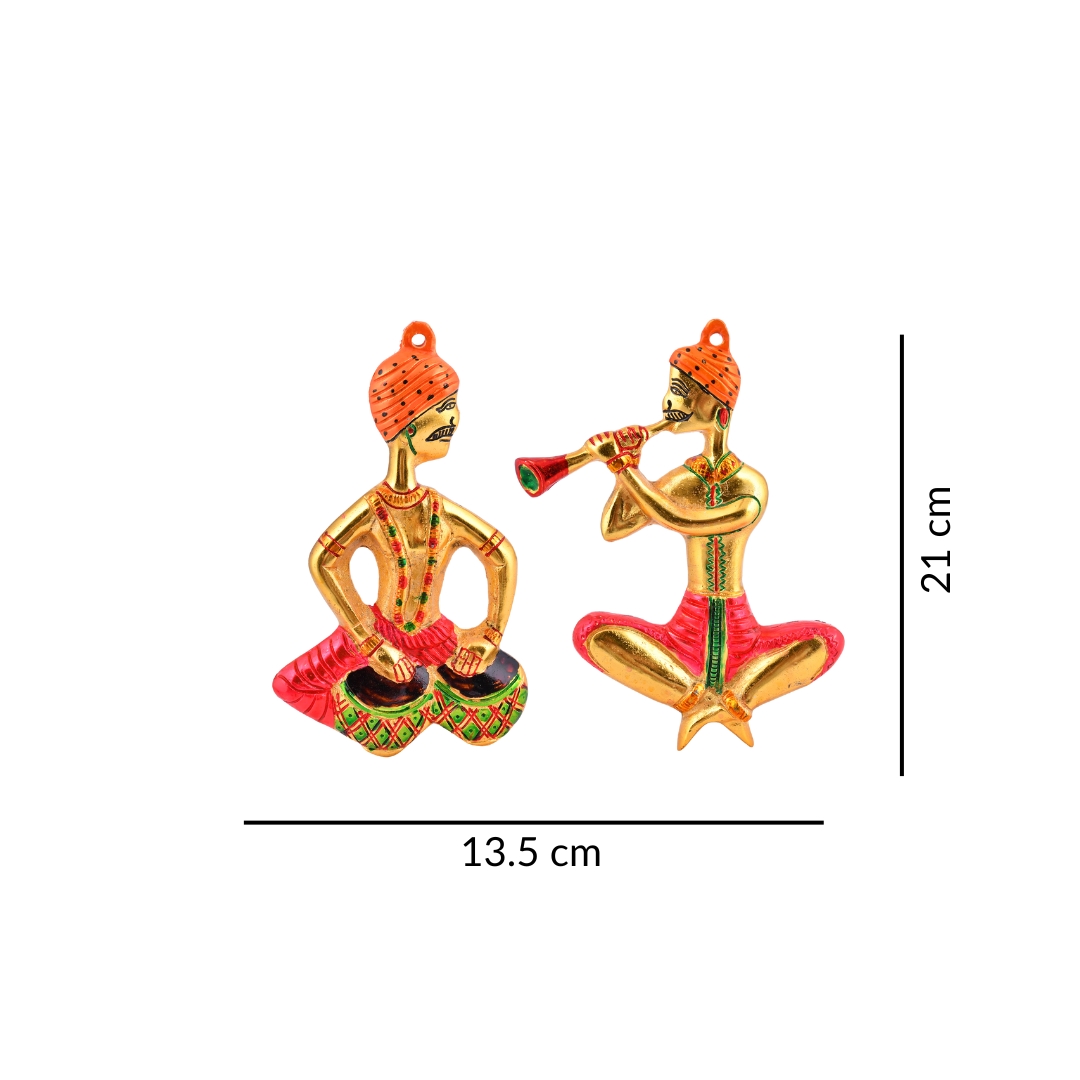 • Musical Man Wall Hanging Set || Dimensions – 21 x 13.5 cm each || Total Weight – 362 g || Material – Aluminium Metal || Golden Finish with Hand-painted Details