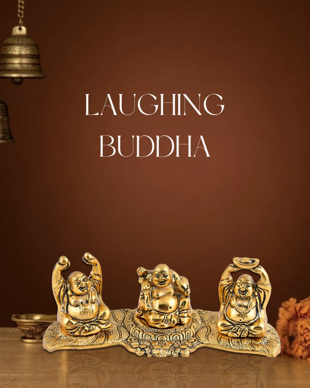 • Attractive Trio Design: Features 3 joyful Buddhas in different postures on a single base.