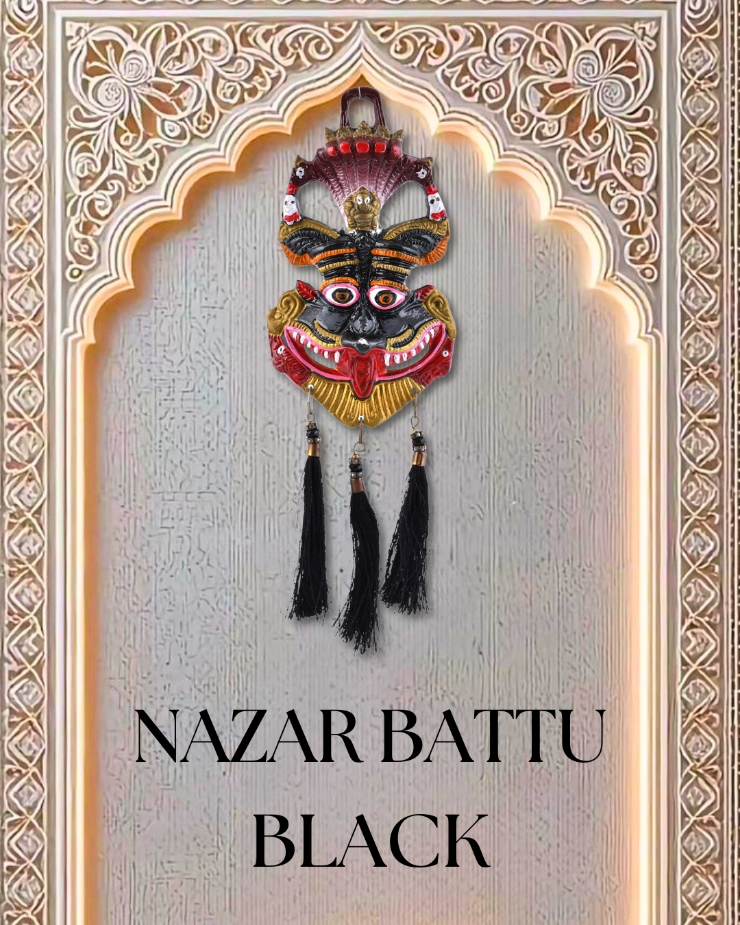 • Nazar Battu Wall Hanging (Black Finish) || Dimensions – 10 x 3.5 in || Weight – 99 g || Material – Polyresin with Tassels