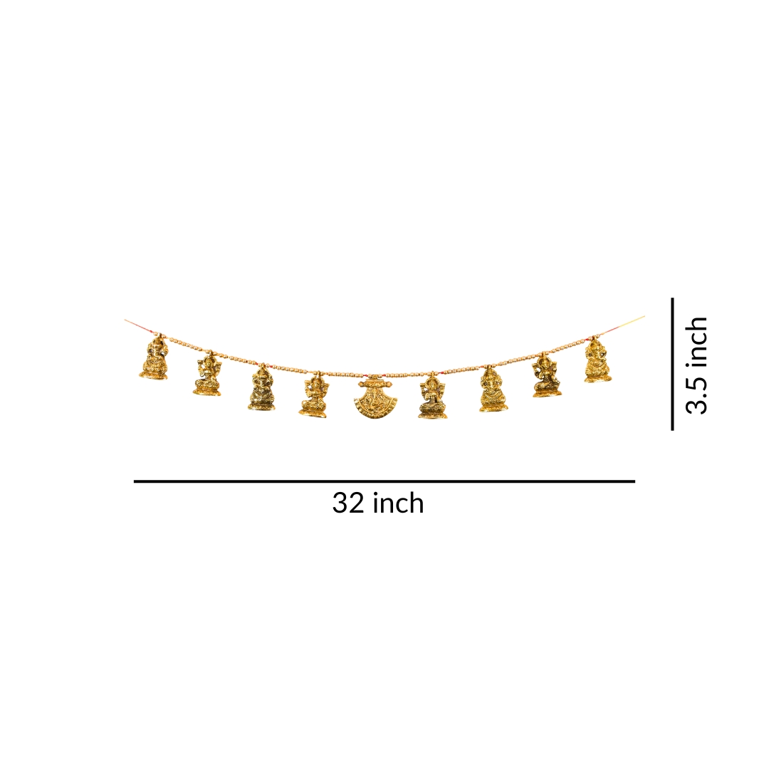 • Decorative Laxmi Ganesh Bandarban / Toran || Material – Aluminium & Beads || Golden Finish