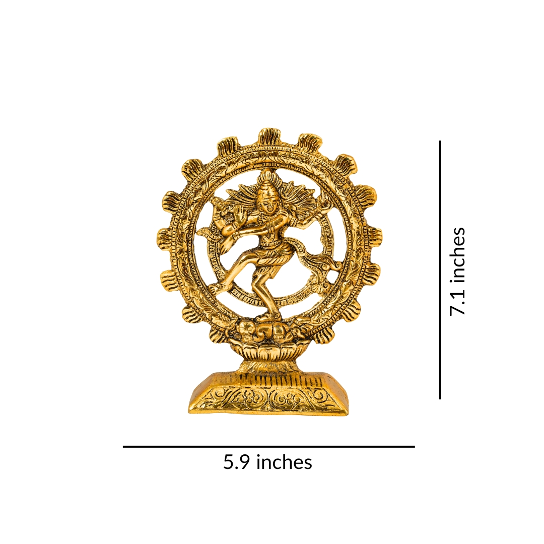• Lord Natraj Statue Idol (Golden Finish) || Dimensions – 18.03 x 14.98 x 4.06 cm || Weight – 350 g (Approx.) || Material – Aluminium Metal