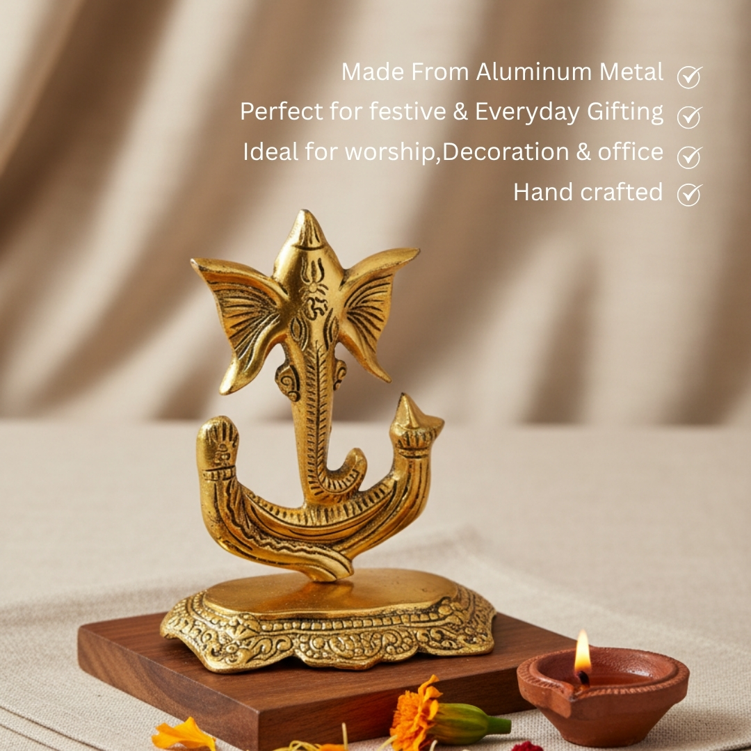 The idol is finely crafted from high-quality aluminium metal with an antique golden polish, making it durable and elegant. Whether placed in a pooja mandir, living room, or office desk, it adds charm while inviting divine blessings of success, protection, and happiness.