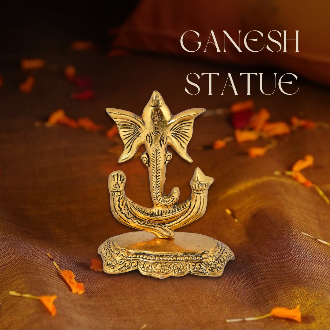 Bring home the sacred presence of Lord Ganesha with this radiant golden aluminium idol and let your space resonate with positivity and divine grace.